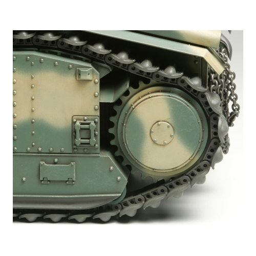 【 模型要目 】 大戦初期のフランス戦線でドイツ軍に最も恐れられたといわれるB1 bis戦車の1/35スケール、プラスチックモデル組立てキットです。★全長192mm、背の高いシルエットや車体右前面の短砲身75mm榴弾砲、懸架装置をカバーする側面装甲など、個性あふれる姿を実感豊かにモデル化。★車体本体パーツはスライド金型を使用して各所のリベット模様も立体感たっぷり。★独特なデザインのキャタピラは、はめ込みによる連結組立て式で実感の高い仕上がり。パーツは切離し済みで組立ても手軽です。キャタピラ側面のディテールも精密に再現。★コマンダー用ペリスコープは旋回可能。ドライバー用も角度限定で旋回できます。★フェンダーとマフラーはマーキングに合わせて2種類を用意。 ★金属製の牽引用チェーン、砲塔後部ハッチに乗り込むコマンダーの人形1体付き。★マーキング4種類、フランス戦車特有の複雑な迷彩塗装を載せたカラー塗装図も付属。★塗装図の裏面にはB1 bis戦車の奮戦を伝える読みごたえたっぷりの戦闘記録を掲載。