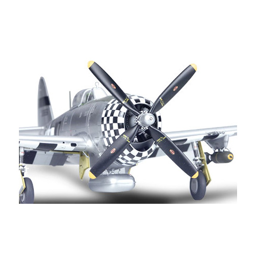 2,300馬力のR-2800-59エンジンとそれを包み込むカウリングも量感あふれる仕上がり。プロペラは写真のタイプの他、カーチス・エレクトリック社製の最も幅の広いタイプなど4種をセットしました。