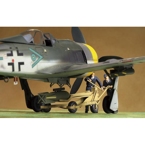 爆弾搭載台車を操作する整備兵の人形2体が臨場感を高めます。もちろん台車本体も精密感あふれる仕上がり。爆弾搭載シーンを楽しめるキットです。