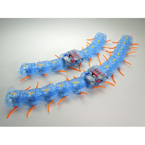 【 ムカデロボットの全長を伸ばすためのユニットです 】 ムカデロボット工作セットの全長をさらに伸ばすためのパーツです。クリヤーブルーのケースやギヤ、オレンジの歩肢など胴節4個分の部品をセット。ユニバーサルジョイントを使用して、関節部を自由に曲げながらパワーを伝えられるので、他の工作の動力伝達パーツとしても使えます。