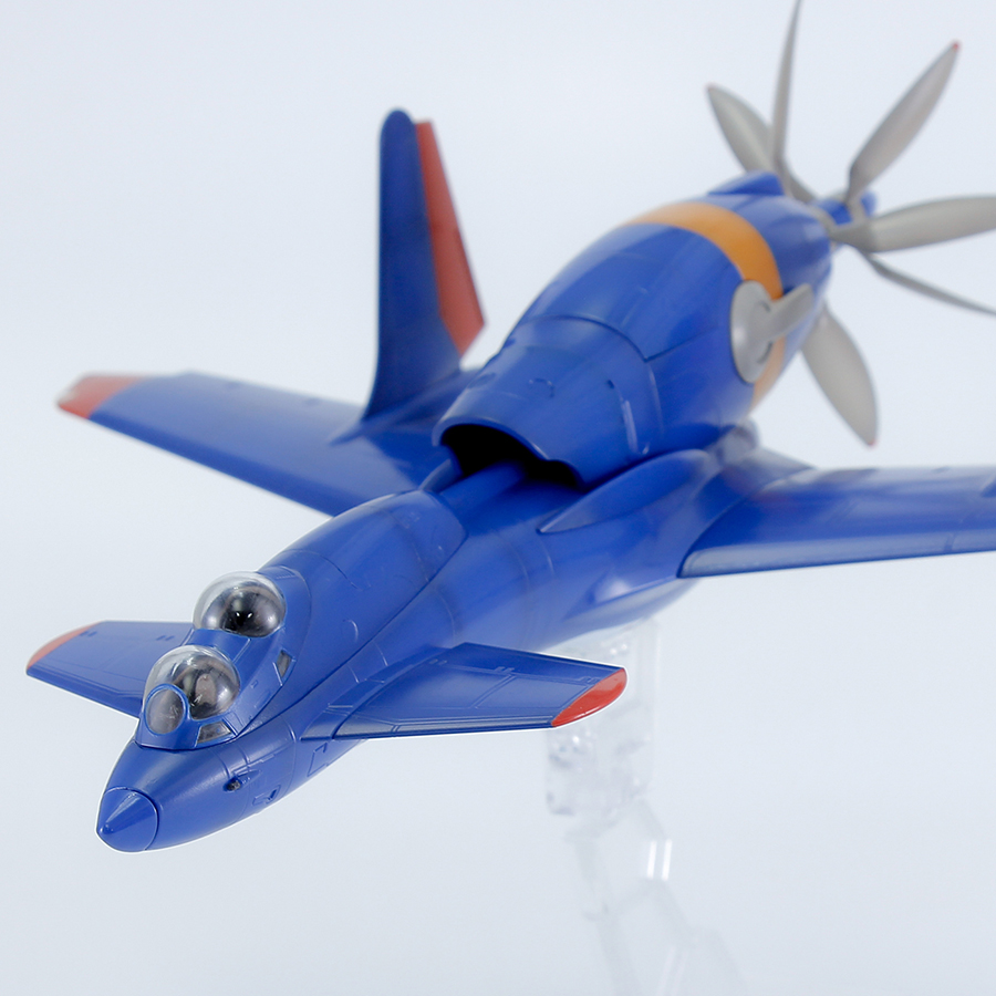 流線型のフォルムや後部ダブルプロペラ等の特徴的な機体形状は、先に発売となりました【単座型】と同仕様となっておりますが、こちらの【複座型】ではコックピットの部分が複座型用に変更となっております。