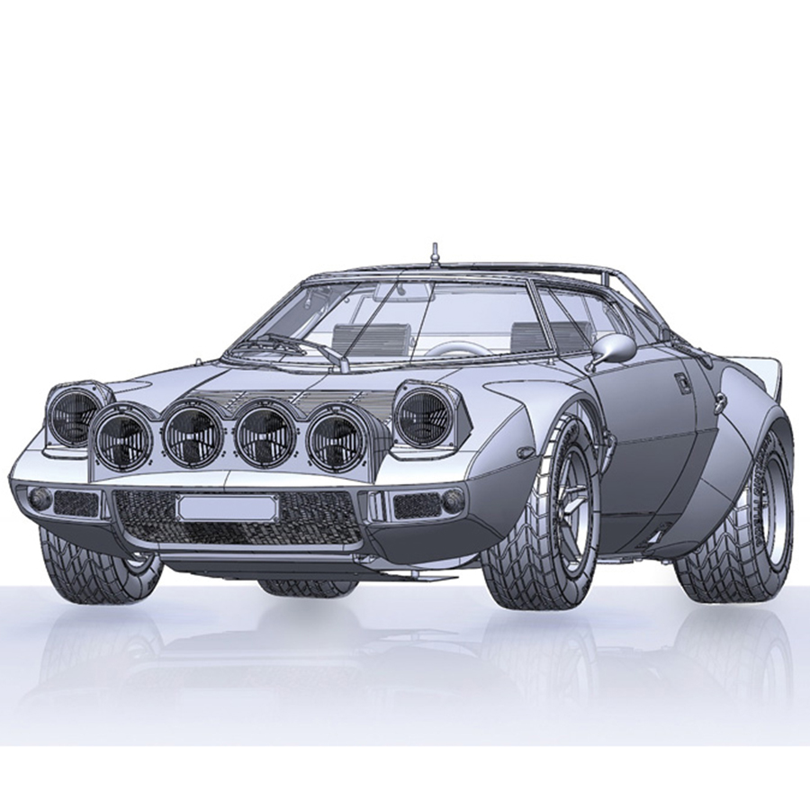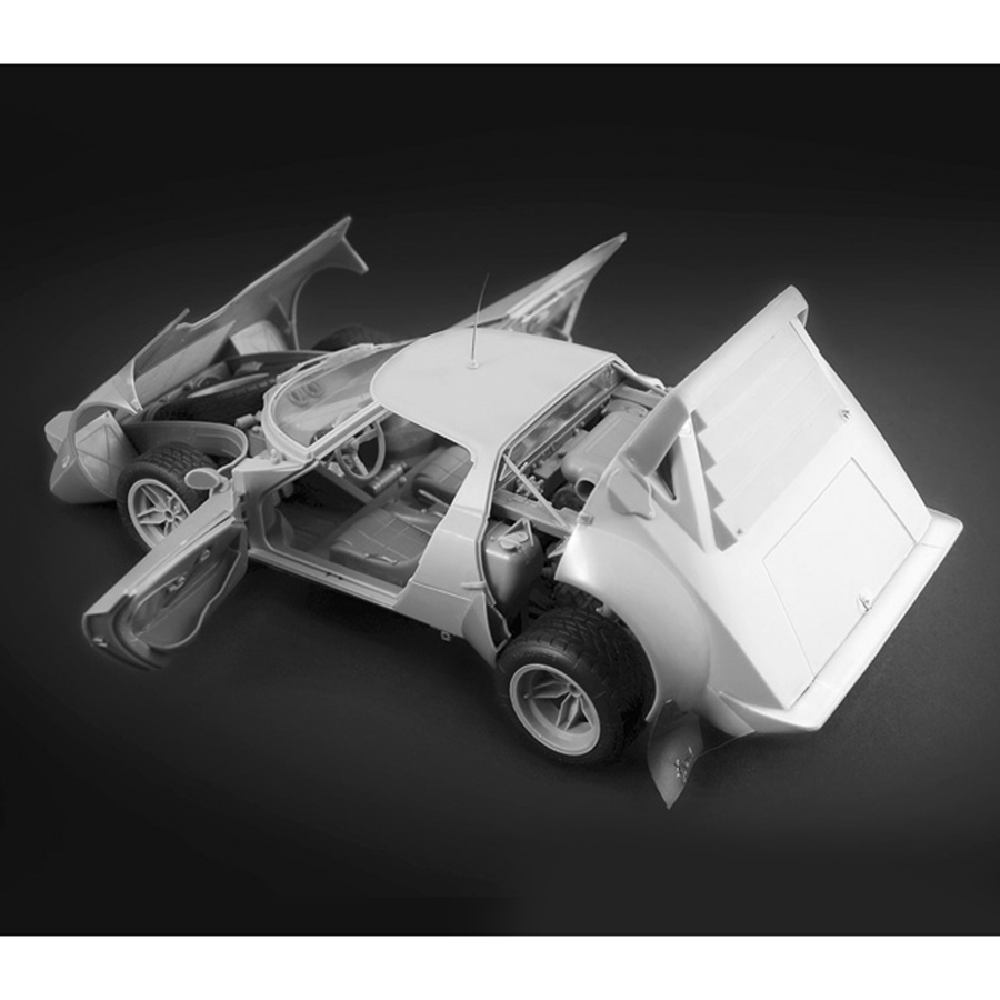 フェラーリ・ディーノから派生した2,400ccのV6エンジンをはじめ、エンジン周りの補器類、車体フレーム、燃料タンク、室内やフロントボンネット内に収まる予備タイヤまで、実車の構造を詳細に再現。