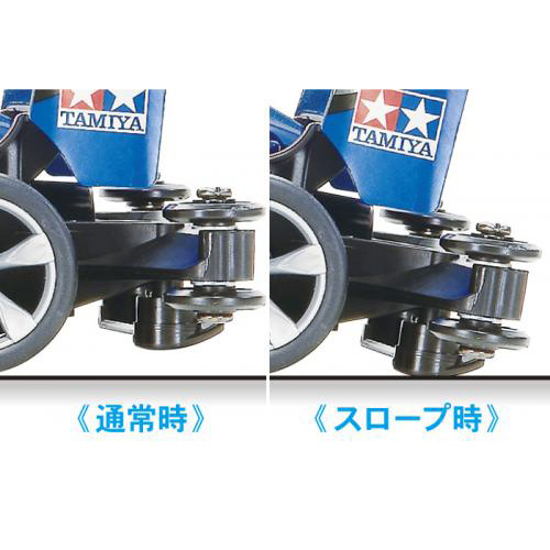 スロープセクションなどの坂道コースを通過する時に、低摩擦樹脂のスキッドバーがコース路面と接触。マシンを減速させてコースアウトを防止します。また、ジャンプ後の着地などで乱れたマシンの姿勢を整える効果もあります。