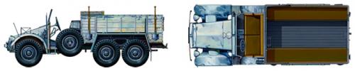 第二次大戦前半、兵員や物資の輸送、軽砲の牽引など幅広い用途に使われたドイツ軍の6輪トラックがクルッププロッツェです。コンパクトな空冷水平対向4気筒エンジンを搭載して、低く視界の良いボンネットを実現。後輪はダブルウィッシュボーンの独立サスペンションを備え、優れた走破性を発揮しました。中でも兵員輸送車タイプのKfz.70は車体後部にベンチシート付きの荷台を装備。大戦勃発前の1933年頃から 1942年まで生産され、各部隊に配備されました。