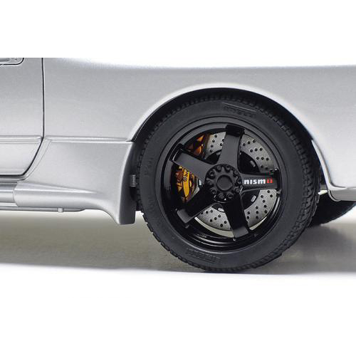 【 模型要目 】 ★1/24スケール、全長190mm、全幅75mm。★ニスモ製パーツを中心に装着したカスタム仕様のスカイラインGT-R(R32)をキット化。★エクステリアではニスモ製の5本スポークホイールをはじめボンネット先端のフードトップモール、トランクリッドのスポイラー、リヤフェンダー下部の大型マッドガードなどを用意。★室内もニスモ製3本スポークステアリングやホワイトメーターで精悍に仕上がります。★排気管やマフラー、マフラーエンド、ターボ用インレットパイプはメッキパーツ。★NISSANやGT-Rのエンブレム、ミラー面などはメタルインレットマーク。★タイヤは質感あるソリッドゴム製。