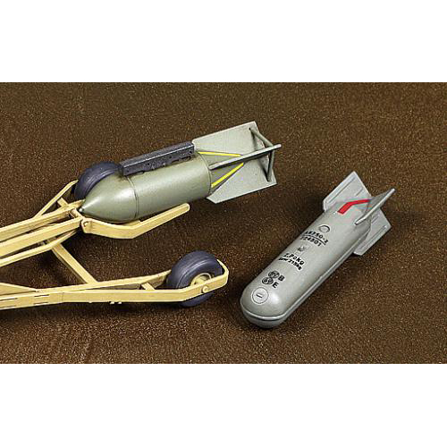 250kg爆弾とAB250爆弾コンテナも細部までリアルに再現。どちらかを選んで胴体下に取り付けられます。また爆弾は搭載台車へ載せることもできます。