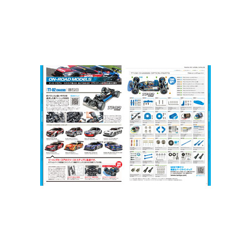ツーリングカーのベーシックシャーシとして人気のTT-02。ラインナップと使えるオプションパーツをカラーで掲載。